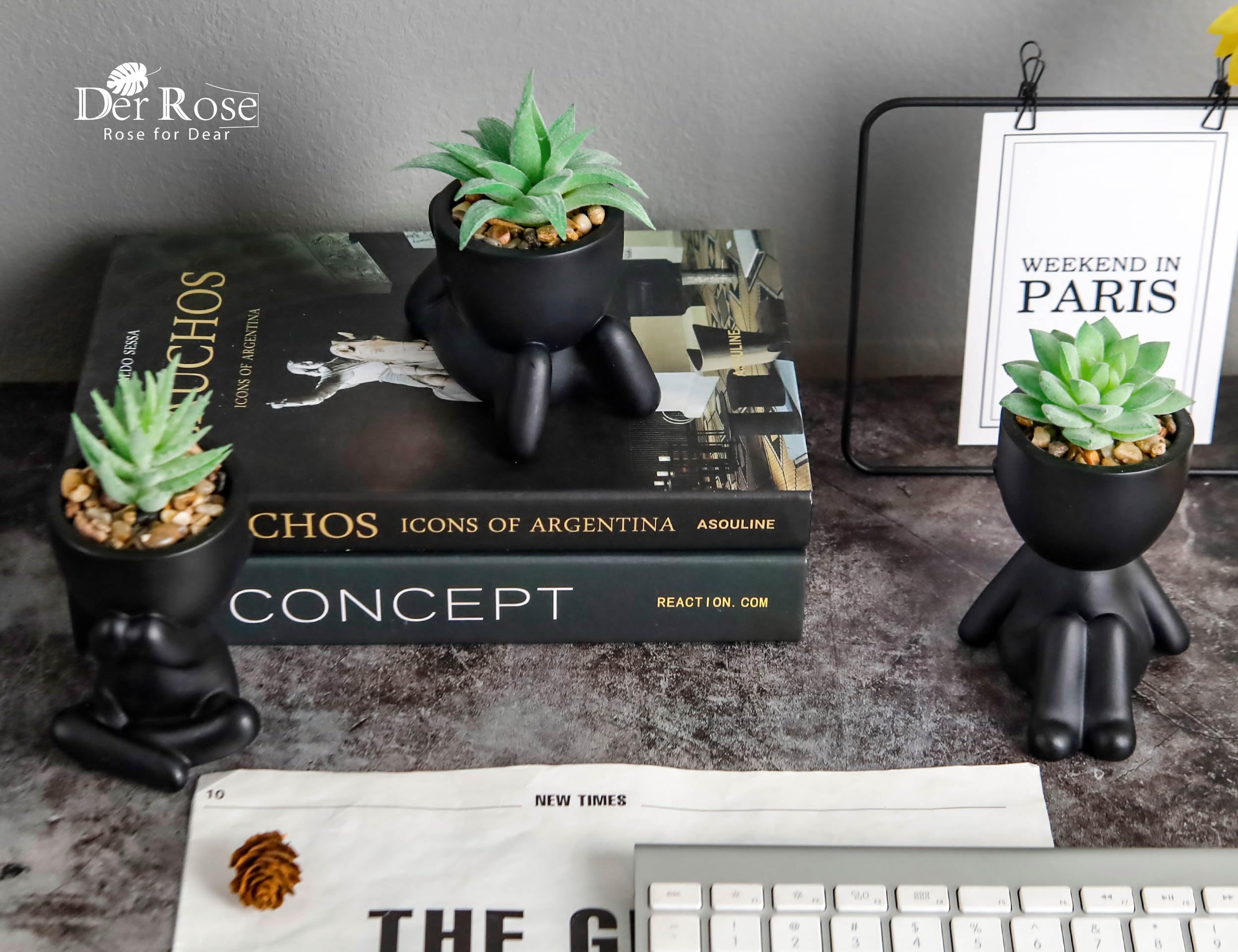 Wow, diese künstlichen Sukkulenten von Der Rose sind einfach der Hit für dein Zuhause! Das Set kommt mit 3 schwarzen, menschenförmigen Töpfen, die mit einer superweichen Beflockung überzogen sind - fühlt sich fast echt an! Mit maximal 15 cm Höhe und 12 cm Breite passen die kleinen Pflanzen perfekt auf jeden Schreibtisch, Nachttisch oder Badezimmerregal. Aus hochwertigem, geruchsneutralem Kunststoff gebaut, halten sie ewig und sehen immer frisch aus. Perfekt für alle, die keine Zeit zum Gießen haben oder einfach keinen grünen Daumen - diese Pflanzen brauchen null Pflege! Ob im Wohnzimmer, Schlafzimmer oder Büro, sie bringen überall einen ästhetischen Touch. Besonders cool als Geschenk für Kollegen oder Freunde - die niedlichen Sukkulenten hellen jeden Raum auf und reduzieren Stress. Einfach hinstellen und staunen, wie viel gemütlicher dein Zuhause wirkt!