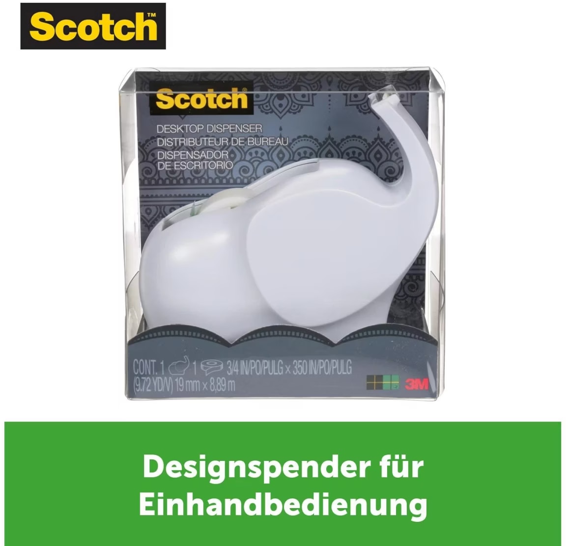 Niedlicher Scotch Tischabroller im Hasen-Design! Verfügbar in rosa oder schwarz - dekorativ für jeden Schreibtisch. Inklusive einer Rolle Scotch Magic Klebeband (19mm x 8.89m). Die rutschfeste, beschwerte Basis hält fest, sodass du das Klebeband easy mit einer Hand abreißen kannst. Das Ende findest du immer schnell - kein langes Suchen mehr! Einfach nachfüllbar: Passt für alle Scotch Klebebänder mit 2.54cm Kern-Durchmesser. Super für Bastler, Büro oder Kinderzimmer. Macht das Verpacken von Geschenken oder das Fixieren von Dokumenten zum Vergnügen. Ein lustiges Geschenk für alle, die praktische und stylische Schreibwaren lieben. Mit dem Scotch Quality-Versprechen - für jedes Problem die richtige Klebelösung!