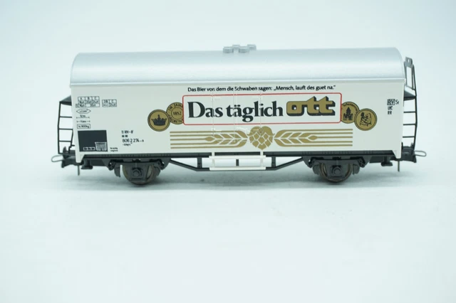 Wow, was für ein cooles Teil für deine Modellbahn! Dieser originalgetreue Kühlwagen der Deutschen Bundesbahn aus der Baureihe Ibs 377 ist einfach klasse. Im typischen kieselgrau lackiert und im Maßstab 1:87 - perfekt für deine Anlage. Mit 13,4 cm Länge über Puffer macht er eine super Figur zwischen den anderen Waggons. Die stirnseitigen Aufstiegsbühnen sind super detailliert und die Dachlüfter geben dem ganzen das gewisse Etwas. Der Betriebszustand entspricht etwa 1983, also ideal für alle, die ihre Anlage in dieser Epoche aufbauen. Ein echter Hingucker für jeden Eisenbahn-Fan! Achtung: Ist nur was für Erwachsene, also nicht in Kinderhände geben. Perfekt zum Sammeln oder für die detailgetreue Gestaltung deiner Modellbahn-Landschaft.