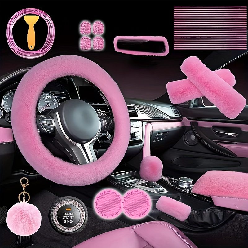 Verwandeln Sie Ihr Auto in eine funkelnde Luxus-Limousine mit diesem komplett glitzernden Innenausstattungs-Set! Im Rosa-Design erhalten Sie einen atemberaubenden Lenkradbezug mit echten Strasssteinen, der nicht nur super aussieht, sondern auch einen angenehm weichen Griff bietet. Dazu passend gibt es Abdeckungen für die Sicherheitsgurte, einen Gangschaltung-Staubschutz, Untersetzer-Pads und sogar einen funkelnden Ring für den Startknopf! Alle Teile sind mit glitzernden Strasssteinen besetzt und schaffen ein harmonisches Gesamtbild. Aber das Set kann nicht nur glänzen - es schützt auch Ihre Original-Ausstattung vor Verschleiß und Schmutz. Der Lenkradbezug verhindert das Verblassen durch Sonneneinstrahlung, die Sicherheitsgurt-Abdeckungen schonen das Material und die Untersetzer schützen vor Verschüttungen. Einfach anbringen und sofort von der Luxus-Optik profitieren! Perfekt für alle, die ihr Auto individueller gestalten wollen oder einfach mehr Glamour im Alltag brauchen. Wenn auch Sie sich jeden Tag aufs Neue über ein funkelndes Auto-Interieur freuen wollen, ist dieses Set genau das Richtige! Einfach bestellen, einbauen und strahlen - so geht individuelles Auto-Design heute!