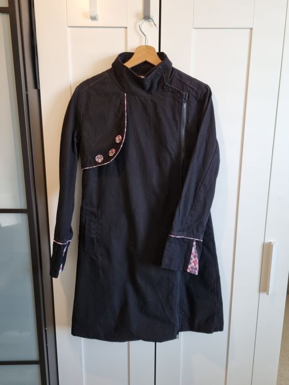 Der Mantel hat einen zeitlosen Schnitt, der zu fast jedem Anlass passt - ob im Büro, beim Stadtbummel oder beim gemütlichen Abendessen. Die kontrastierenden Details und die praktischen Taschen machen ihn zu einem echten Allrounder in deinem Kleiderschrank.