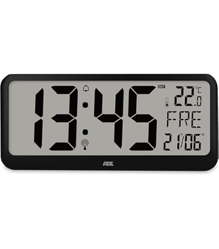 Mensch, diese Technoline Funk-Wanduhr ist richtig praktisch und sieht dabei noch stylisch aus! Mit DCF77 Funktechnologie - stellt sich automatisch auf die genaue Zeit ein, kein Nachstellen mehr nötig. Zeigt nicht nur die Uhrzeit (12/24h wählbar), sondern auch Datum, Wochentag, Innentemperatur (0-50°C) und Luftfeuchtigkeit (20-95%). Super fürs Raumklima - du siehst sofort, ob's zu trocken oder zu feucht ist. Das große LCD-Display ist mega gut lesbar, auch aus der Entfernung. In elegantem silbernem Rahmen - passt in jedes Zimmer. Kann an die Wand oder auf den Tisch gestellt werden. Läuft mit 4 AA-Batterien (nicht dabei), also flexibel aufstellbar. Mit 36,9x22,9x2,4cm ist sie kompakt aber trotzdem gut sichtbar. Perfekt für Wohnzimmer, Küche, Flur oder Büro. Einfach aufhängen, Batterien rein und du hast immer die perfekte Zeit und weißt, wie's im Raum steht. Für alle, die Wert auf Pünktlichkeit und ein gutes Raumklima legen - diese Uhr ist ein Must-have!