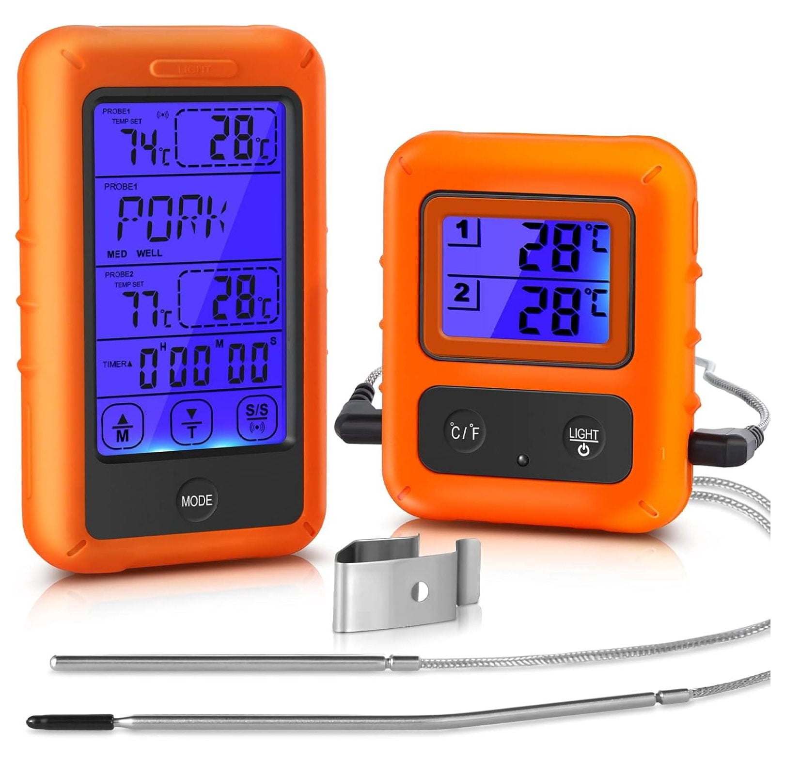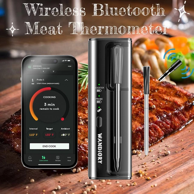 Endlich perfekt gegrillt! Das Jayron Wireless Thermometer ist dein bester Freund beim Grillen, Smoken oder Backen. Mit 70 Metern Reichweite - du kannst dich gemütlich ins Wohnzimmer setzen während das Thermometer dir signalisiert, wenn dein Steak die perfekte Temperatur hat! Zwei Edelstahlsonden dabei: Eine fürs Fleisch, eine für die Ofentemperatur. 8 voreingestellte Programme für Rind, Lamm, Schwein, Huhn, Fisch und mehr! Temperaturbereich von -20°C bis 300°C - super genau mit 1°C Abweichung. Wechsel zwischen °C und °F wie du willst. Die Sonden sind nach FDA-Lebensmittelstandard und wasserdicht IPX7. Mit Timer-Funktion und automatischer Datenspeicherung. Hintergrundbeleuchtung für abends am Grill. Batteriebetrieben (4 AAA, nicht im Lieferumfang). Nur 177 Gramm leicht - perfekt für unterwegs! Mit 2 Jahren Garantie. Einfach ein game-changer für jeden Grill-Fan!