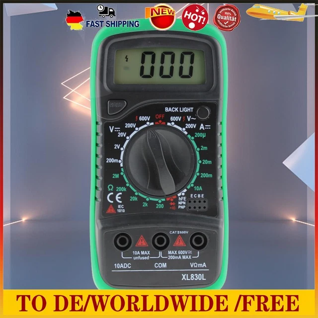 Für alle, die gerne selbst an Elektrozeug rumwerken! Dieses digitale Zangenmultimeter MT87 ist dein neuer bester Freund für alle Messaufgaben. Ob du die Spannung an der Steckdose checken willst, den Stromverbrauch eines Geräts messen musst oder den Widerstand prüfen willst - dieses Teil kann alles! Das coole Feature: Als Zangenmultimeter kannst du Ströme messen, ohne den Stromkreis auftrennen zu müssen. Einfach die Zange um das Kabel und schon siehst du den Wert auf dem großen LCD-Display. Misst AC/DC Spannung bis 600V, Wechselstrom von 20-400A und Widerstand bis 200 kΩ. Mit Data-Hold-Funktion frierst du die Anzeige ein, damit du die Werte in Ruhe ablesen kannst. Der Summer für Durchgangsprüfung piept, wenn eine Verbindung besteht - super praktisch! Für unterwegs oder in der Heimwerkstatt perfekt geeignet. Benötigt 2 AAA-Batterien (nicht im Lieferumfang). Egal ob Auto, Haushalt oder Hobby - mit diesem Multimeter findest du jedes elektrische Problem!