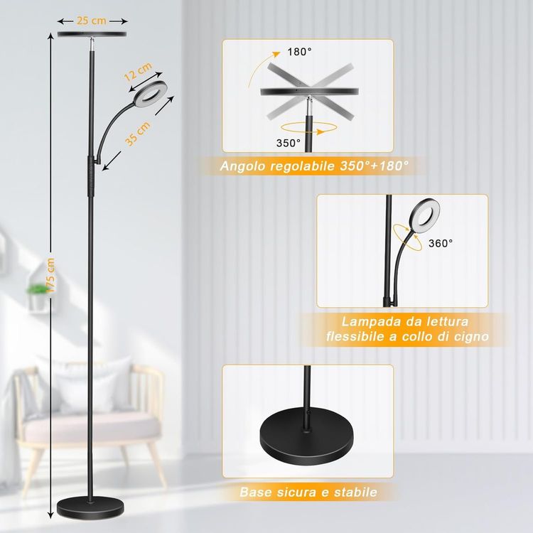 Diese Bonsery Stehlampe ist der absolute Alleskönner für dein Zuhause! Mit 36W und 3800 Lumen macht sie jeden Raum gemütlich. Das geniale: Du kannst sie stufenlos dimmen und die Farbtemperatur von warm 2700K bis kühl 6500K einstellen - perfekt fürs Lesen, Arbeiten oder Entspannen. Die Fernbedienung mit Magnet haftet am Lampenfuß, geht also nicht verloren. Der Lampenkopf dreht sich 350° in alle Richtungen, sodass du das Licht genau dorthin lenkst, wo du es brauchst. Timer-Funktion inklusive - nach einer Stunde geht sie automatisch aus, super praktisch fürs Schlafzimmer. Modernes schwarzes Design passt in jedes Interieur. Einfach aufstellen, einstecken - und schon hast du perfektes Licht! Ob im Wohnzimmer, Büro oder Schlafzimmer - diese Lampe rockt einfach jeden Raum.