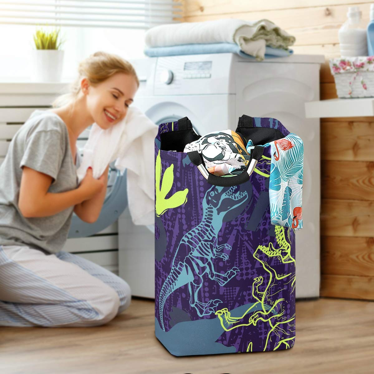 Aufräumen macht mit diesem Dino-Korb endlich Spaß! Der süße T-Rex Wäschekorb von DESIGN&WELT bringt Ordnung ins Kinderzimmer. Aus strapazierfähigem Filz gefertigt, ist er super leicht aber dennoch robust. Das geniale: Er ist faltbar! Wenn er nicht gebraucht wird, einfach zusammenfalten und platzsparend verstauen. Mit der praktischen Hängeschlaufe kann er auch an der Wand befestigt werden. Perfekt für schmutzige Wäsche, Spielzeug oder als Deko-Element. Das lustige Dino-Design motiviert Kinder tatsächlich zum Aufräumen. Ein tolles Geschenk für kleine Dino-Fans zu Geburtstag, Weihnachten oder einfach so. Macht jedes Kinderzimmer sofort gemütlicher und bunter - und hilft dabei, endlich Ordnung zu halten!