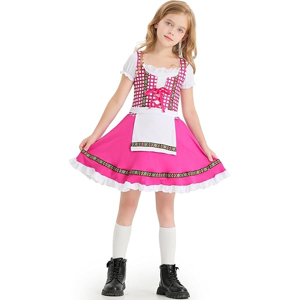 Mädels, aufgepasst! Dieses niedliche Dirndl bringt bayerisches Flair in deinen Kleiderschrank. Perfekt für Oktoberfest, Karneval, Halloween oder einfach für besondere Anlässe. Das klassische Dirndl-Design mit der hübschen Spitzenschürze sieht einfach entzückend aus! Ob in Blau, Rosa, Grün oder anderen Farben - für jeden Geschmack ist was dabei. Die Qualität stimmt und das Trachtenkleid ist in vielen Größen erhältlich - von 86/92 bis 164. Super praktisch: Du kannst es als Eltern-Kind-Bekleidung kombinieren! Stell dir vor: Mama und Tochter im matching Dirndl - wie süß ist das denn? Ob mit oder ohne Bluse darunter - du siehst einfach klasse aus. Und das Beste: Das Dirndl ist nicht nur für Oktoberfest gut, sondern auch für Mittelalterfeste, Theateraufführungen oder einfach um mal Prinzessin zu spielen. Also, schnapp dir dein Dirndl und lass die Feste beginnen! Einfach anziehen und strahlen wie eine echte Bayerin!