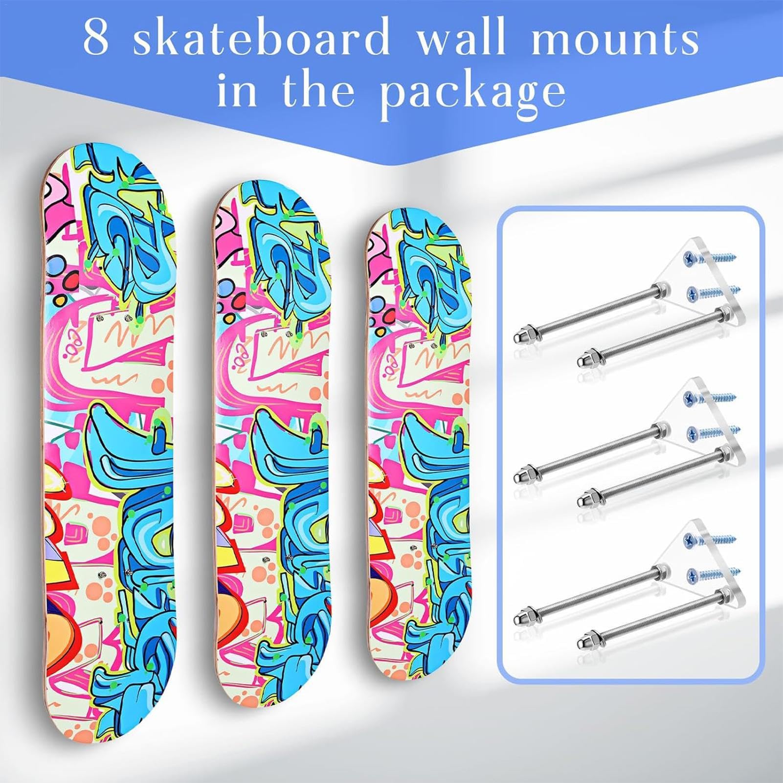 Endlich Ordnung für deine Boards! Dieses 4er-Set Acryl-Halterungen macht deine Skateboards zur stylischen Wanddekoration. Aus stabilem Acryl und Metall - hält auch schwere Longboards. Maße: 8x3,1x6,2cm - passt für die meisten Boards. Mit Edelstahl-Befestigung - einfach montieren ohne Bohren. Perfekt für Wohnzimmer, Garage oder Jugendzimmer. Sieht aus wie schwebende Kunst - richtig cool! Auch super als Geschenk für Skateboard-Fans. Mach deine Boards zum Eyecatcher!