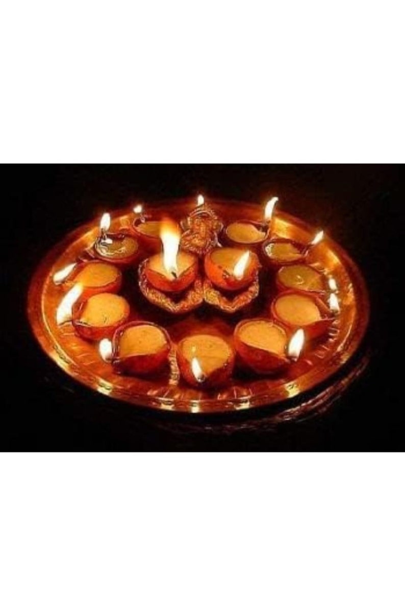 Bring traditionellen Charme in dein Zuhause! Diese 12 handgefertigten Ton-Diyas sind perfekt für Diwali, Navratri oder tägliche Pooja-Zeremonien. Aus natürlichem Ton gefertigt und mit ungiftigen Farben verziert, schaffen sie eine wunderbar spirituelle Atmosphäre. Einfach mit Ghee oder Öl befüllen, Docht rein, anzünden und schon verbreiten sie ihren warmen Schein. Perfekt für Haustür, Fensterbank, Altar oder als Deko-Element. Jedes Diya ist ein Unikat - made by indischen Kunsthandwerkern. Erlebe die Magie traditioneller Feste mit diesen authentischen Öllampen!