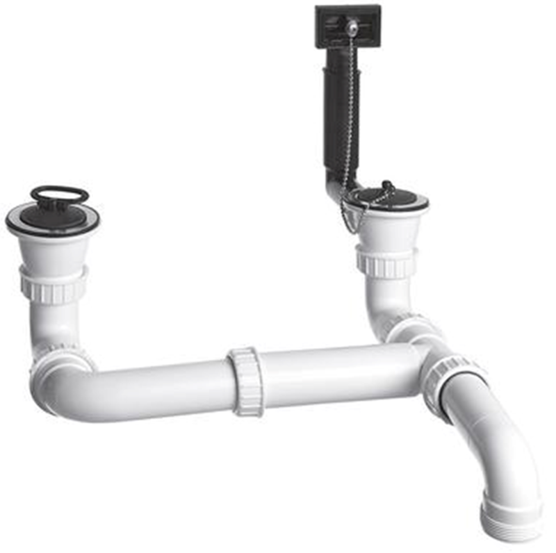 AlcaPlast A448 Doppel Spülbecken Siphon 1,5' | Ablaufgarnitur Ohne Geräteanschluss