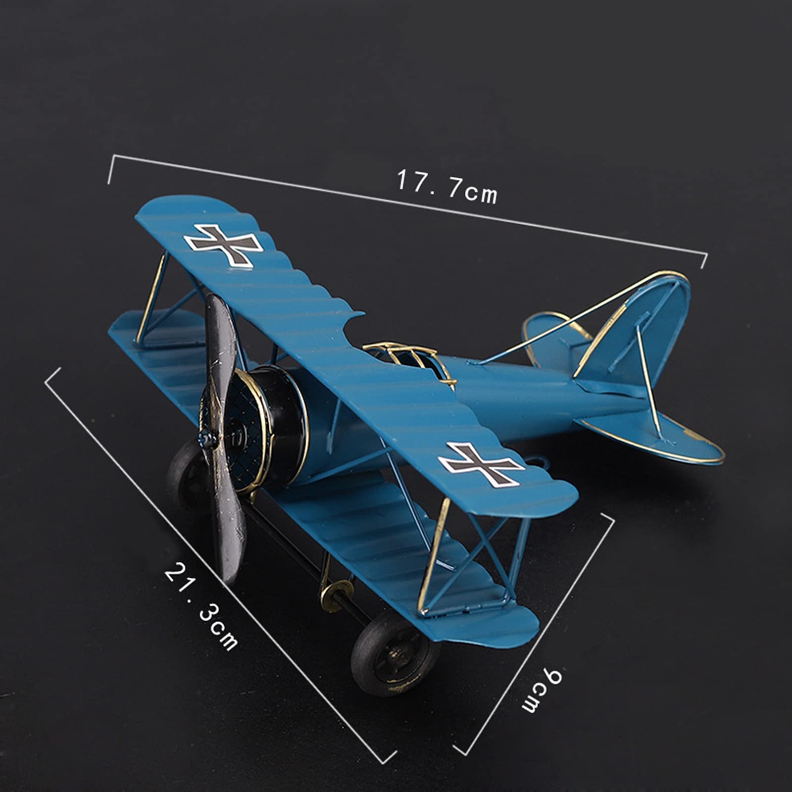 Wow, dieses Vintage-Flugzeug ist ein echter Hingucker! Ein detailreicher Doppeldecker aus Metall, handgefertigt und wunderschön verarbeitet. Mit den Maßen 10x9x5cm ist es perfekt für den Schreibtisch, Regal oder Kaminsims. Es wiegt nur 130g - leicht aber stabil. Erhältlich in gelb, rot oder blau - je nach Geschmack. Bringt sofort nostalgisches Flair in jeden Raum. Ob im Büro, Wohnzimmer, Café oder Bar - dieses Flugzeug macht überall eine gute Figur. Ein tolles Geschenk für Flugzeug-Fans oder Sammler. Aus hochwertigem Schmiedeeisen, langlebig und robust. Einfach hinstellen und sich an dem schönen Design erfreuen - dein neues Lieblings-Deko-Stück das garantiert Gesprächsthema wird!