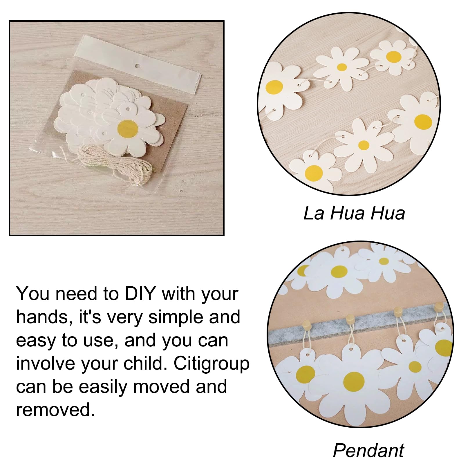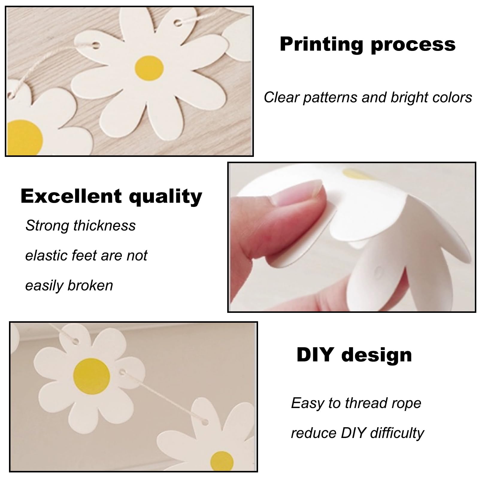 Frühlingshafte Stimmung garantiert! Diese 3 Meter lange Blumen-Girlande mit süßen Gänseblümchen verwandelt jeden Raum in eine blühende Oase. Doppelseitig bedruckt auf stabilem Karton - von beiden Seiten ein perfektes Bild! Die kräftigen Farben verblassen nicht, egal ob drinnen oder draußen verwendet. Perfekt für Geburtstagsfeiern, Hochzeiten, Babyfeste, Gartenpartys oder einfach zur Frühlingsdekoration im Kinderzimmer. Mit praktischem Aufhängesystem super einfach zu montieren - keine komplizierte Bastelei nötig! Einfach aufhängen und sofort ist die Party-Stimmung da. Ob an der Wand, am Fenster, an der Gartentür oder als hübscher Fotohintergrund - diese Girlande macht überall eine gute Figur. Die bunte Farbvielfalt begeistert Groß und Klein. Dekoration vom Feinsten, die wirklich jeder Feier das gewisse Etwas verleiht!