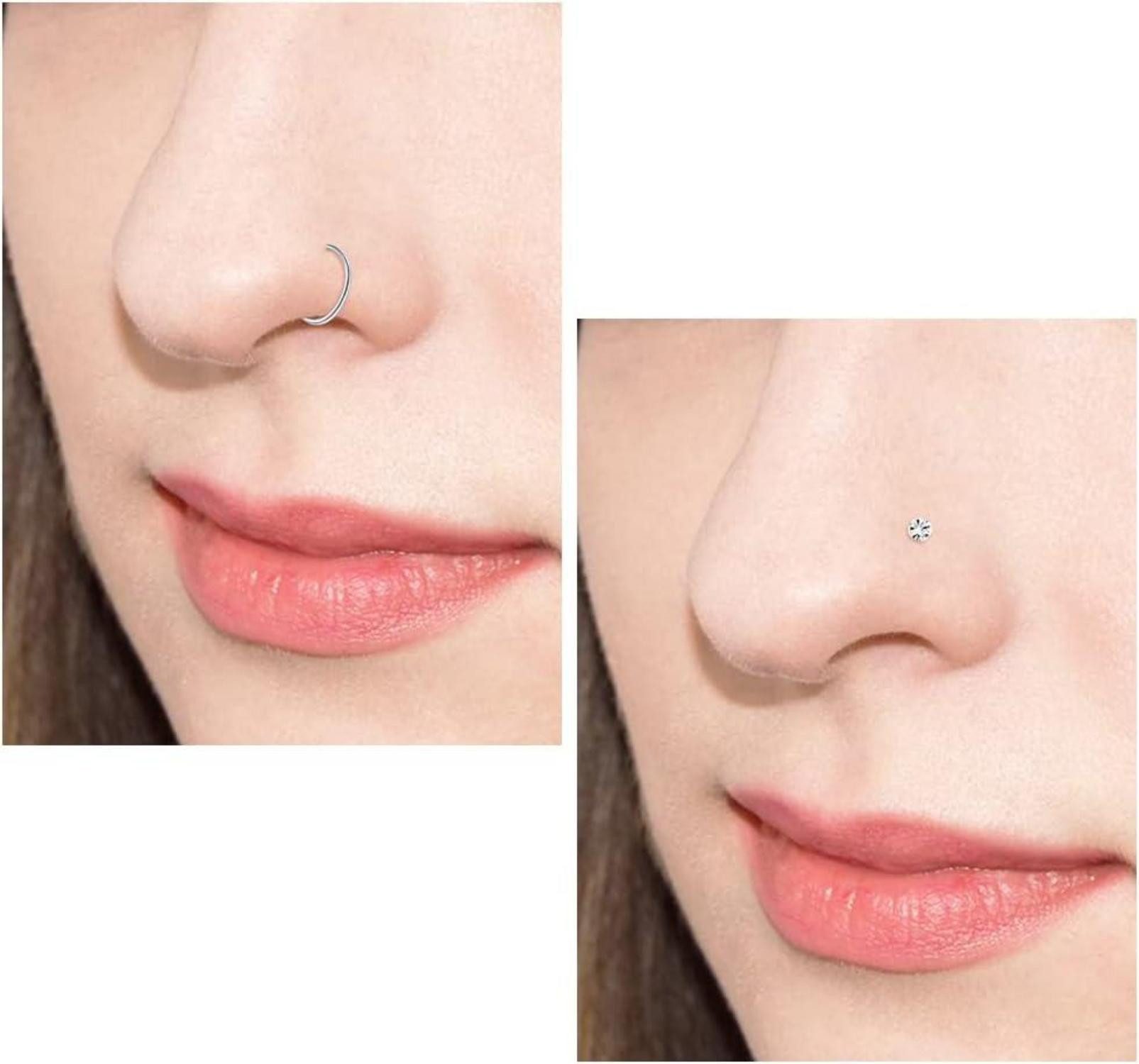 Crdifu 18G Doppelt Nasenpiercing Ring 3er Set - Silber Gold Rosegold 316L Edelstahl 8mm