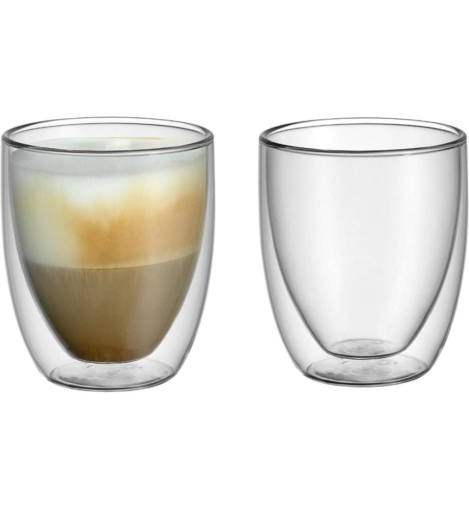 2 Stück Doppelwandige Cappuccinotassen - Isolierglas 270ml