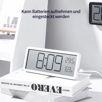 Im schicken weißen Design passt die Uhr in jeden Raum - ob Schlafzimmer, Küche oder Büro. Batterien (2x AAA) sind schon dabei, und der ausklappbare Ständer ermöglicht sowohl Wandmontage als auch Standbetrieb. Einfach ein klasse Gerät für mehr Organisation im Alltag!