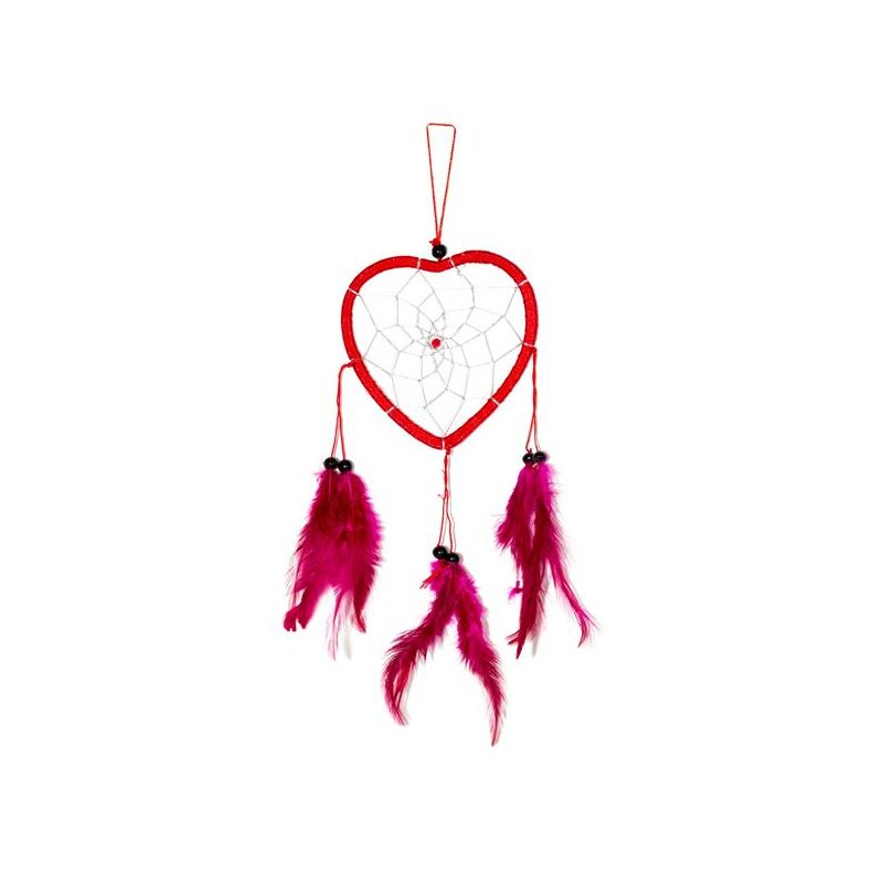 Traumfänger Dreamcatcher 70cm - Rote Indianer Deko Mit Pinken Federn