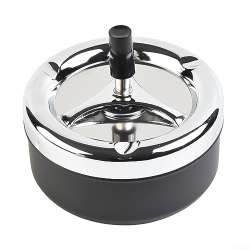 Hey, für alle Raucher oder wenn du Gäste hast, die rauchen: Dieser Aschenbecher mit Drehdeckel ist echt praktisch! Aus robustem Edelstahl in schwarz - sieht nicht nur gut aus, sondern rostet auch nicht. Der Deckel verhindert, dass Asche bei Wind wegfliegt und reduziert den Geruch. Super für Balkon, Terrasse oder Garten. Mit 13,5cm Durchmesser ist er groß genug für mehrere Zigaretten, aber nicht zu klobig. Einfach zu reinigen - Deckel abnehmen und ausspülen, sogar spülmaschinenfest! Sieht modern aus und passt in jede Umgebung. Ob für Zuhause oder im Gastronomie-Bereich - damit bleibt alles sauber und ordentlich. Einfach hinstellen und nutzen - mehr Komfort geht kaum!