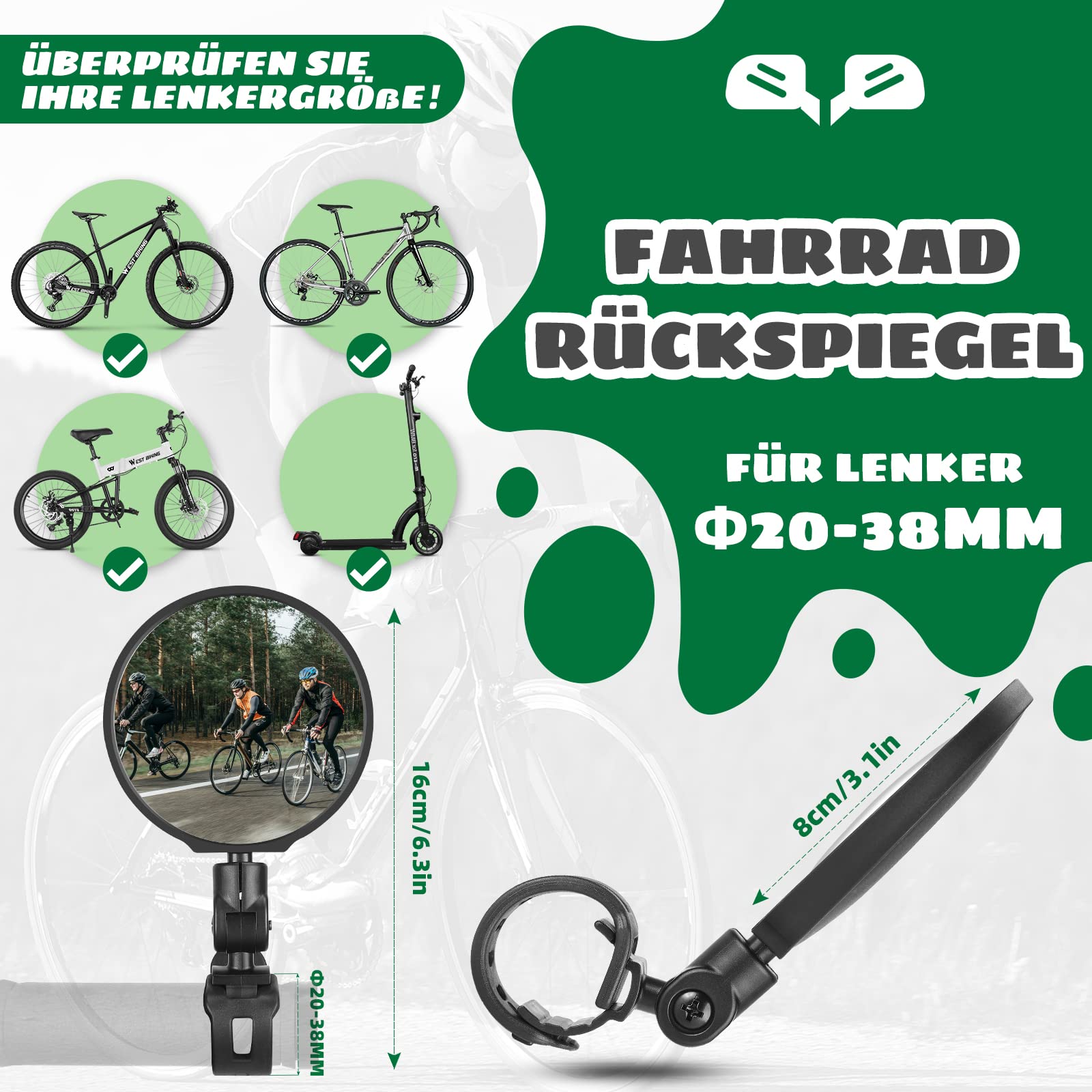 • 2er Set Fahrradspiegel - 360° Drehbarer Lenkerspiegel Für E-Bike, Mountainbike Und Rennrad