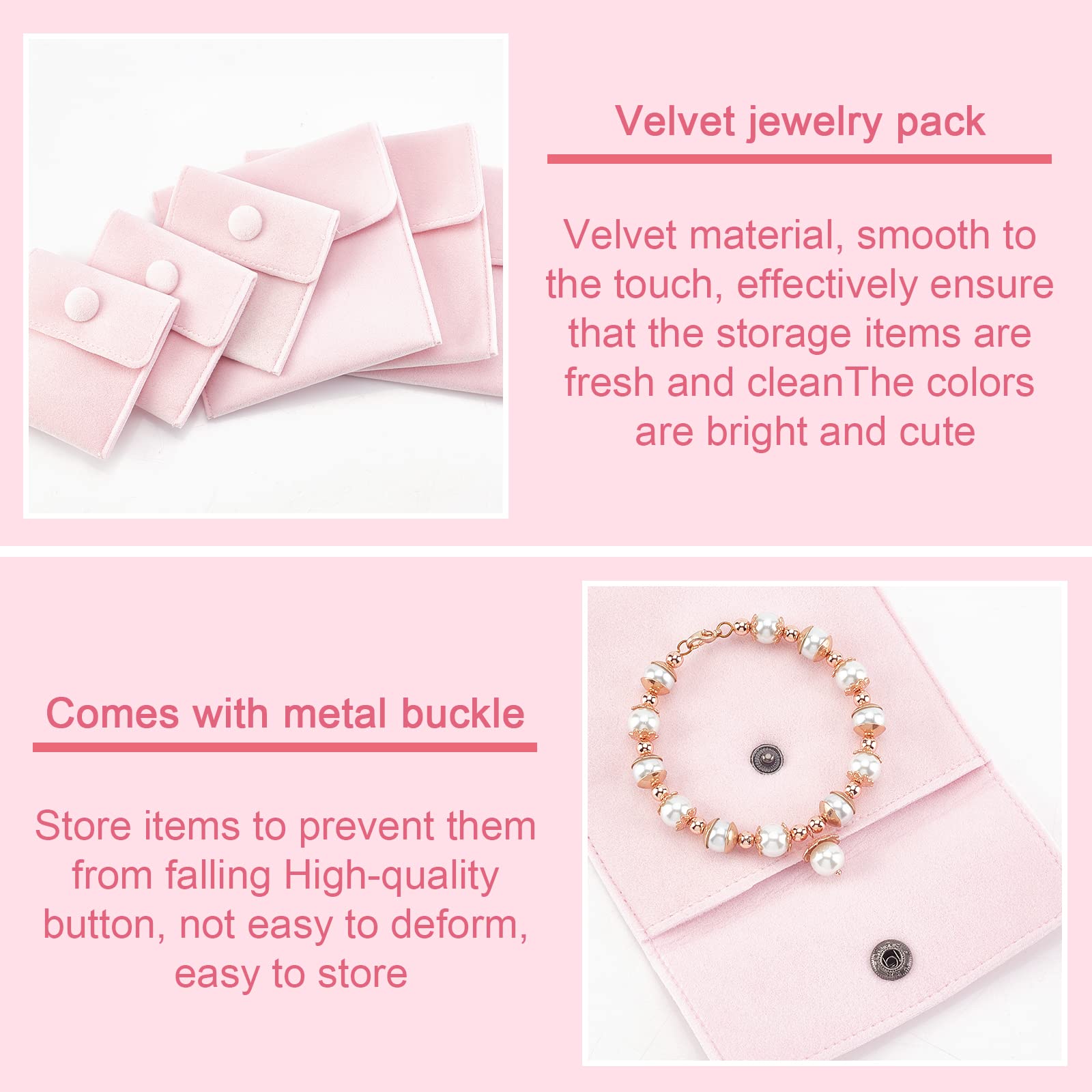 So hübsch verpackt macht Schenken doppelt Spaß! Diese zarten rosa Samtbeutel sind perfekt für kleine Geschenke, Schmuck und wertvolle Kleinigkeiten. Einfach klasse für alle, die es liebevoll mögen.\n\nWas du bekommst:\n• 8 Samtbeutel in 2 Größen - für alles passend\n• 4x große Beutel: 14,3x10 cm - für Armbänder, etc.\n• 4x kleine Beutel: 10,4x7 cm - für Ringe, Ohrringe\n• Mit praktischem Druckknopf - sicher verschlossen\n• Aus weichem Samt - fühlt sich edel an\n\nSuper für Schmuck, Armbänder, Halsketten, Perlen, Kopfhörer oder als Geldgeschenk-Verpackung. Wiederverwendbar und immer wieder schön. Perfekt für Hochzeiten, Geburtstage, Valentinstag oder Weihnachten. Mach deine Geschenke zu etwas Besonderem - mit diesen bezaubernden Samtbeuteln!