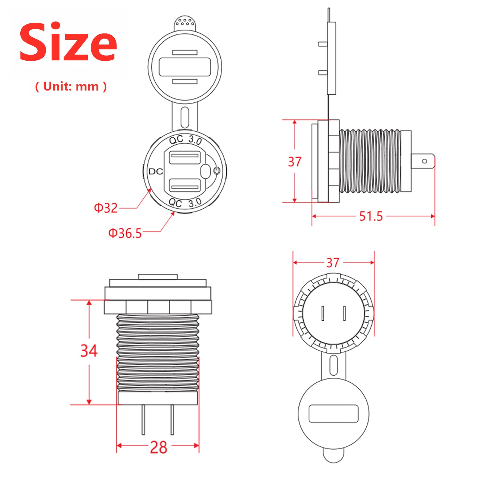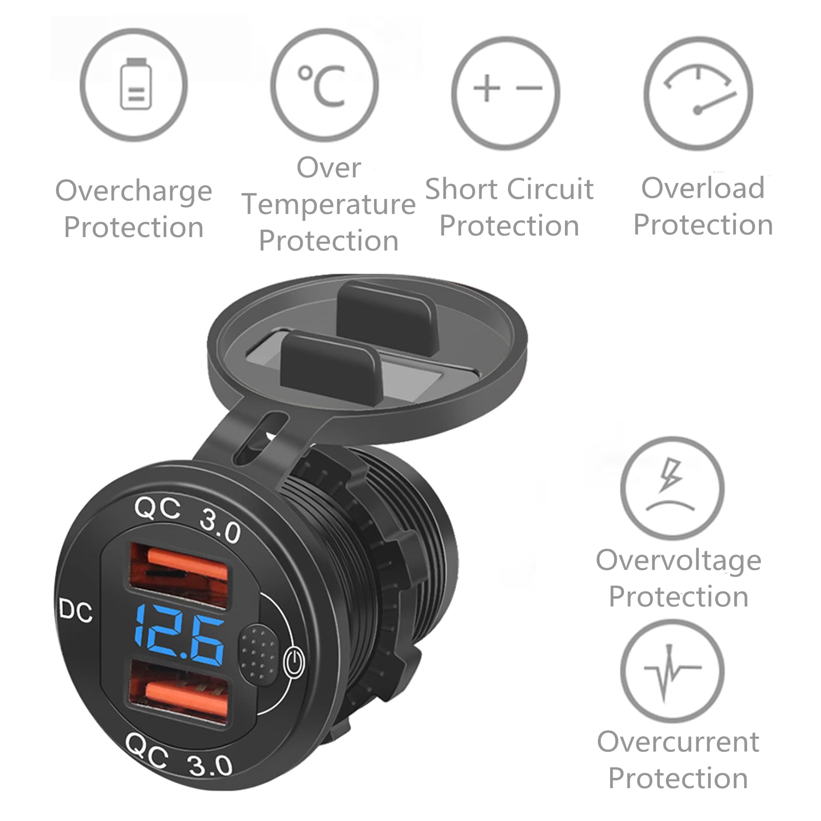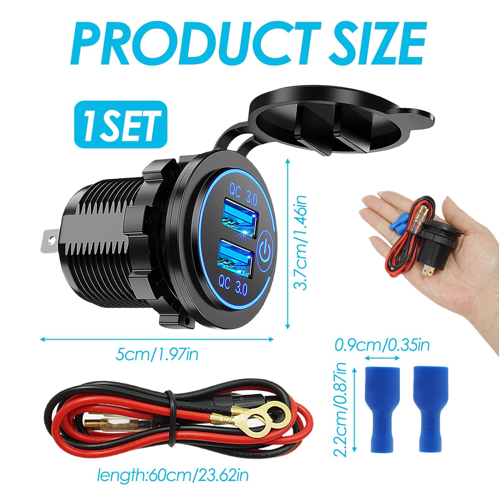 Immer volle Power im Auto! Diese duale USB-Steckdose mit QC3.0-Schnellladetechnologie lädt deine Geräte blitzschnell. Mit bis zu 3,6A pro Anschluss kannst du zwei Geräte gleichzeitig laden. Das coole LED-Display zeigt dir immer den aktuellen Ladestatus an - auch nachts gut ablesbar. Der praktische Touch-Schalter macht das Ein- und Ausschalten zum Kinderspiel. Wasserdicht und staubgeschützt - hält auch bei schlechtem Wetter problemlos durch. Mit 23,6 Zoll Kabel für flexible Installation. Perfekte IC-Schutztechnologie verhindert Überladung, Kurzschluss und Überhitzung. Einfach im Auto installieren und nie wieder mit leerem Akku dastehen! Ideal für Smartphones, Tablets, Navigationsgeräte und alle USB-fähigen Geräte. Hol dir diese moderne Ladelösung und genieße komfortables Laden bei jeder Fahrt - sicher, schnell und zuverlässig!