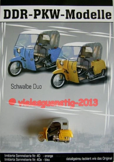 Ein echtes Stück DDR-Geschichte für deine Vitrine! Dieses detailgetreue Modell des Simson Krause Duo bringt nostalgische Erinnerungen zurück. Als limitierte Auflage der Brauerei Braustolz ist dieses Sammlerstück etwas ganz Besonderes. Im Maßstab 1:64 zeigt das Modell alle charakteristischen Merkmale des originalen DDR-Autos. Von der typischen Form bis zur originalen Lackierung - hier stimmt einfach jedes Detail! Das Modell besteht aus hochwertigem Spritzguss/Plastik und überzeugt durch seine liebevolle Verarbeitung. Perfekt für Sammler, DDR-Fans oder als besonderes Geschenk für jemanden, der sich für historische Fahrzeuge begeistert. Die bunte Farbgebung und die authentische Nachbildung machen dieses Modell zu einem echten Hingucker in jeder Sammlung. Ob im Regal, auf dem Schreibtisch oder in der Vitrine - dieses Stück Zeitgeschichte sorgt garantiert für Gesprächsstoff! Weil's eine limitierte Edition ist, solltest du nicht zu lange warten - solche Raritäten sind schnell vergriffen.