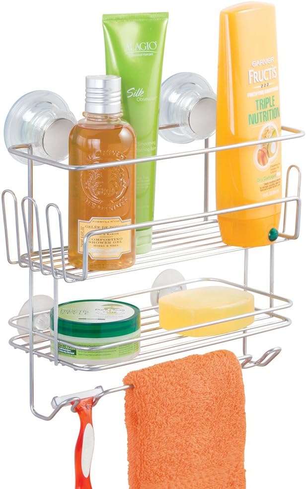 Schluss mit Bohren! Diese Duschablage von Noviatrix macht dein Badezimmer im Handumdrehen organisiert. Mit der innovativen Gel-Vakuum-Saugnapf-Technologie haftet sie bombenfest auf glatten Oberflächen - einfach drücken und sie hält. Die 32cm lange Ablage aus space-Aluminium bietet reichlich Platz für Shampoo, Duschgel & Co. Vier abnehmbare Haken geben zusätzlichen Stauraum für Waschhandschuhe, Rasierer oder Badeschwämme. Das schnelle Ablauf-Design verhindert lästige Wasserpfützen. Rostfrei und leicht zu reinigen - ein Wisch und alles ist blitzblank. Perfekt für Fliesen, Glas oder andere glatte Oberflächen. Willst du sie woanders haben? Einfach Knopf drücken, abnehmen und neu positionieren - keine Spuren, kein Stress. Auch super für die Küche oder den Balkon!