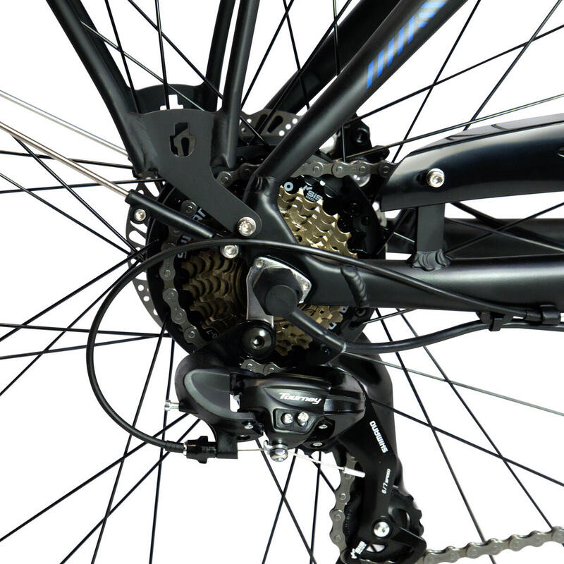Entdecke die Stadt neu mit dem Cecotec Urban E-Bike! Mit einem 250W Motor und 460Wh Akku meisterst du problemlos Strecken bis 90km. Die 28-Zoll-Räder mit Vorderradfederung sorgen für komfortables Fahren, auch auf unebenen Straßen. Die 7-Gang Shimano-Schaltung und die doppelten hydraulischen Scheibenbremsen geben dir volle Kontrolle. Das Display am Lenker zeigt alle wichtigen Daten auf einen Blick. Der leichte Aluminiumrahmen macht das Bike wendig und leicht zu handhaben. Perfekt für den Stadtverkehr, um bequem zur Arbeit zu fahren oder die Umgebung zu erkunden. Modern, praktisch und voller Power!