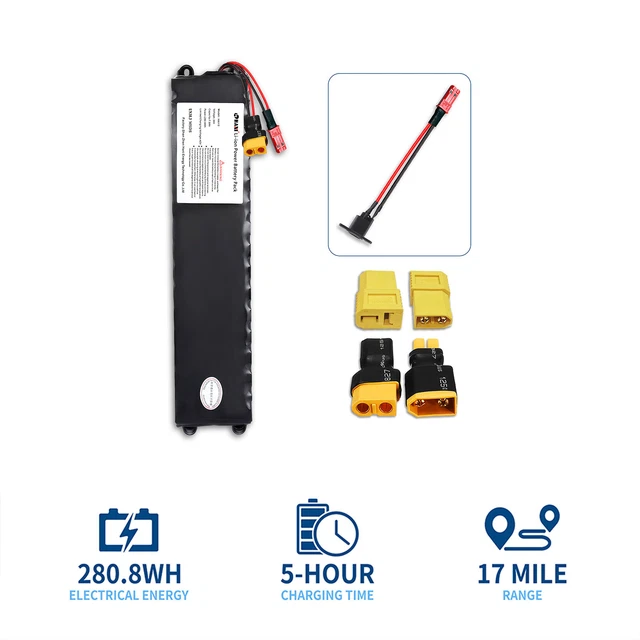 Gib deinem E-Scooter neuen Schwung! Dieser 36V 7.8Ah Lithium-Akku passt perfekt für M365 Elektroroller und andere Modelle mit 0-500W Motoren. Mit 280,8Wh Kapazität bringt er dich zuverlässig durch den Tag - in 3-4 Stunden ist er wieder voll geladen. Das 10S3P Akkupack ist mit einem 30A BMS ausgestattet, das vor Überladung, Überentladung und Kurzschluss schützt. Die Maße von 30x7x4cm (LxBxH) passen in die meisten Scooter. Im Lieferumfang: der Akku, XT60 und T-Typ Adapter, sowie eine Bedienungsanleitung. 12 Monate Garantie und 3 Monate Umtauschrecht geben dir Sicherheit. Ohne Ladegerät - falls du eins brauchst, einfach separat bestellen. Einfach austauschen und wieder losrollen!