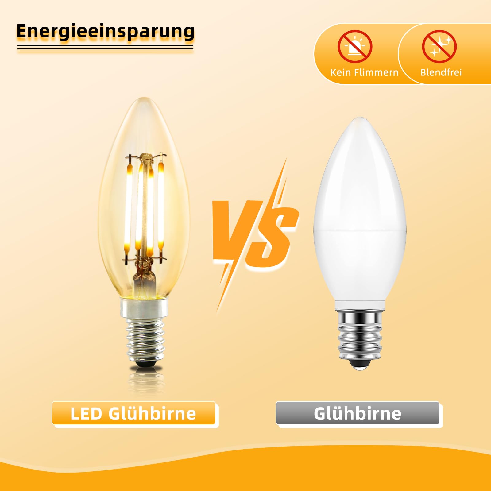 Wunderschöne Vintage-LEDs im Edison-Stil! Diese 6 kleinen Kerzenbirnen bringen gemütliches Licht in deine Wohnung. Mit warmweißem 2700K Licht - genau wie die gute alte Glühbirne, aber viel sparsamer. Nur 4 Watt Verbrauch, aber so hell wie 40 Watt Glühbirnen - das spurt richtig Stromkosten! Die bernsteinfarbenen Glaskolben mit sichtbaren LED-Fäden sehen einfach klasse aus. Perfekt für Kronleuchter, Pendelleuchten oder als Deko-Beleuchtung. Einfach in die E14-Fassung schrauben - sofort einsatzbereit. Hält bis zu 20.000 Stunden - also viele Jahre ohne Wechsel. Besonders in Cafés, Bars oder stylischen Wohnungen machen sie was her. Das Licht ist angenehm warm und gemütlich - kein kaltes LED-Licht. Mit Energieklasse A+ - top effizient. Macht aus jeder Lampe sofort einen Hingucker - retro, aber modern!