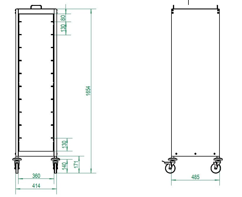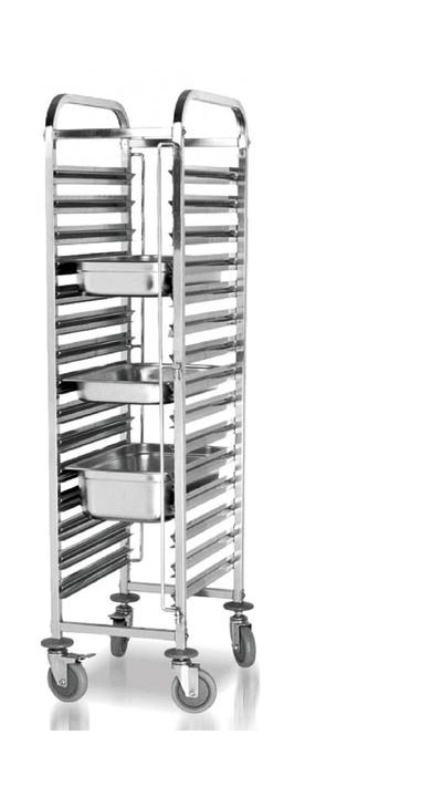 Perfekt für die Profi-Gastronomie! Dieser robuste Regalwagen von GastroHero ist ein echter Alleskönner in jeder Küche. Mit 7 Etagen aus hochwertigem Edelstahl bietet er reichlich Stauraum für Tabletts, Behälter und alles, was in einer gut organisierten Küche so anfällt. Die GN 1/1 Maße (380x550x1150mm) passen perfekt zu standardisierten Gastronomiebehältern. Mit 4 Lenkrollen - davon 2 mit Bremsen - ist er super mobil und standsicher. Die praktischen Einfachschienen sorgen dafür, dass Tabletts und Bleche sicher liegen bleiben. Ob in der Pizzeria, im Café, Betriebsrestaurant oder der Mensa - dieser Wagen erleichtert den Transport von Getränken, Speisen und Geschirr ungemein. Einfaches Handling, langlebige Verarbeitung und durchdachtes Design - genau das, was man von GastroHero erwartet. Damit behältst du in stressigen Servicezeiten immer den Überblick!