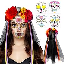 Spektakulärer Day of the Dead Haarreif für dein nächstes Kostüm! Mit wunderschönen roten und schwarzen Rosen sowie elegantem Mesh-Schleier - einfach mysteriös und anziehend! Perfekt für Halloween-Partys, Karneval oder Cosplay-Events. Aus hochelastischem, weichem Material - angenehm zu tragen, auch über längere Zeit. Passt zu langen und kurzen Haaren - einfach aufsetzen und der Look ist komplett! Ideal als Geschenk für Gothic- und Cosplay-Fans. Einfache Pflege: Nur in warmem/kaltem Wasser einweichen, nicht in die Waschmaschine! Werde zum absoluten Hingucker auf jeder Party!