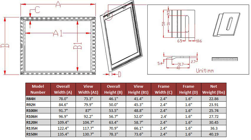 Heimkino-Feeling pur mit dieser mega Leinwand von ELITE SCREENS! Stolze 135 Zoll (299x168cm) im 16:9 Format - da fühlst du dich wie im Kino! Das 5D CineGrey Tuch sorgt für super Kontraste und ist auch bei Tageslicht gut nutzbar. Der 6cm breite, samt-beflockte Aluminiumrahmen sieht nicht nur edel aus, sondern sorgt für perfekte Planlage des Tuches. 4K Ultra HD Ready, Polarized 3D Ready, HDR Ready - da kannst du mit allen modernen Projektoren was anfangen. Einfache Wandmontage inklusive - alles dabei was du brauchst: Rahmenteile, Verbindungsstücke, Schrauben, Dübel und sogar verstellbare Fixierplatten für gleichmäßige Spannung. Für die 16:9 und 21:9 Formate gibt's sogar akustisch transparente Tücher, damit du die Lautsprecher hinter der Leinwand verstecken kannst. Wenn Platz da ist, ist eine Rahmenleinwand einfach die beste Lösung für dein Heimkino. Einfach aufbauen, Projektor anwerfen und Filmabend genießen! Deine Freunde werden neidisch sein - versprochen!
