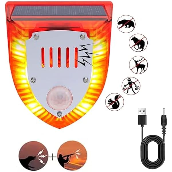 Schütze deinen Garten vor ungebetenen Gästen! Dieser solarbetriebene Bewegungsalarm mit 129dB Lautstärke vertreibt Tiere und Eindringlinge zuverlässig. 13 verschiedene Geräusche stehen zur Auswahl - von Hundegebell über Schüsse bis zu Sirenen. Das rote Blinklicht wirkt wie Sicherheitskameras und schreckt zusätzlich ab. Vier Betriebsmodi: 24h Alarm, nur Licht, Nachtmodus oder nur Nachlicht. IP55 wasserdicht und mit zwei Lademöglichkeiten (Solar oder USB). Einfache Montage an Wand oder Boden. Perfekt für Garten, Hof, Farm oder Terrasse. Endlich Ruhe vor Wildtieren und unerwünschten Besuchern - ganz ohne Stromkabel!