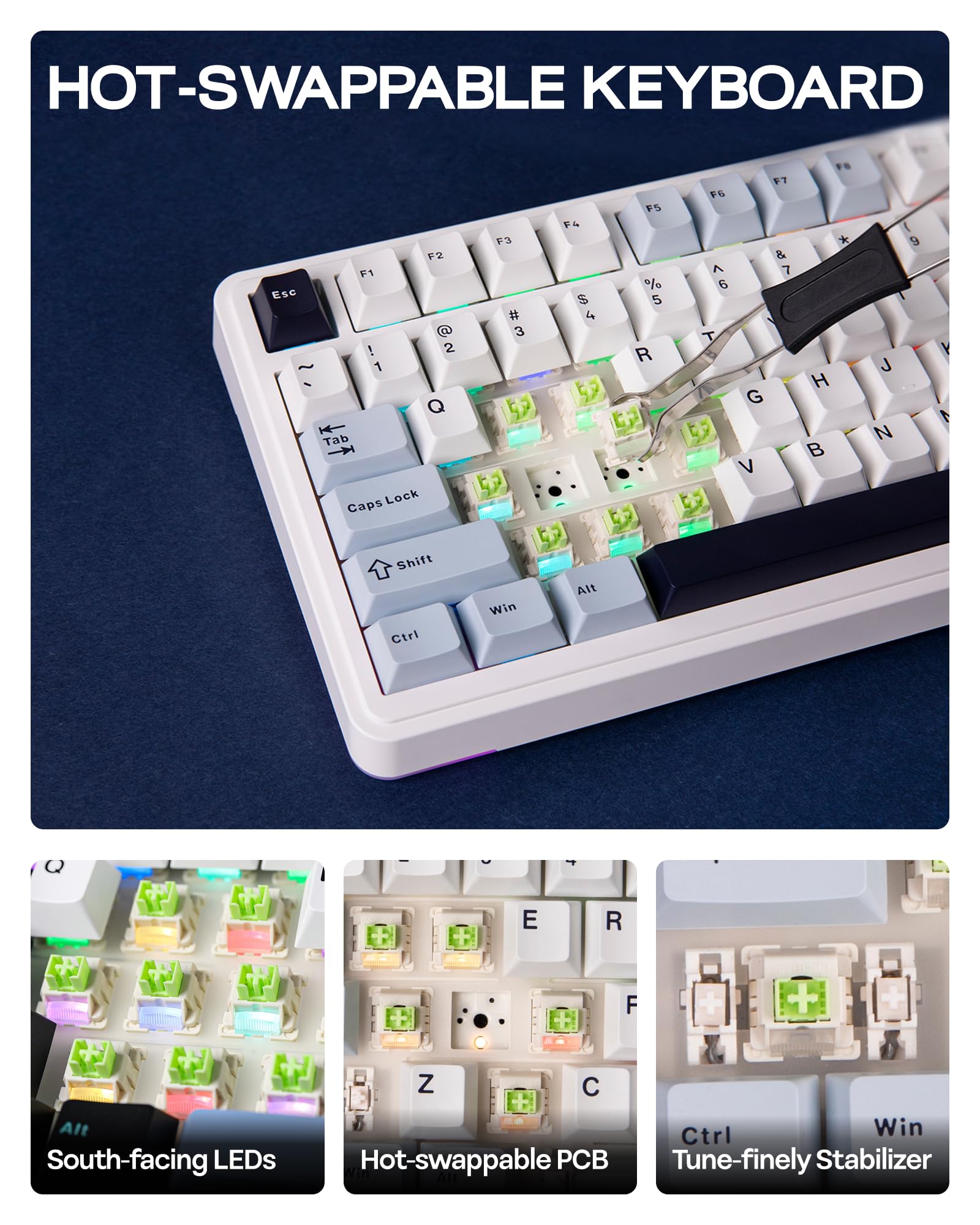 Gamer, hört zu! Diese EPOMAKER EA75 ist keine gewöhnliche Tastatur - sie ist ein Erlebnis! Mit 81 Tasten und einem praktischen Drehknopf hast du alles, was du brauchst, ohne Platz zu verschwenden.