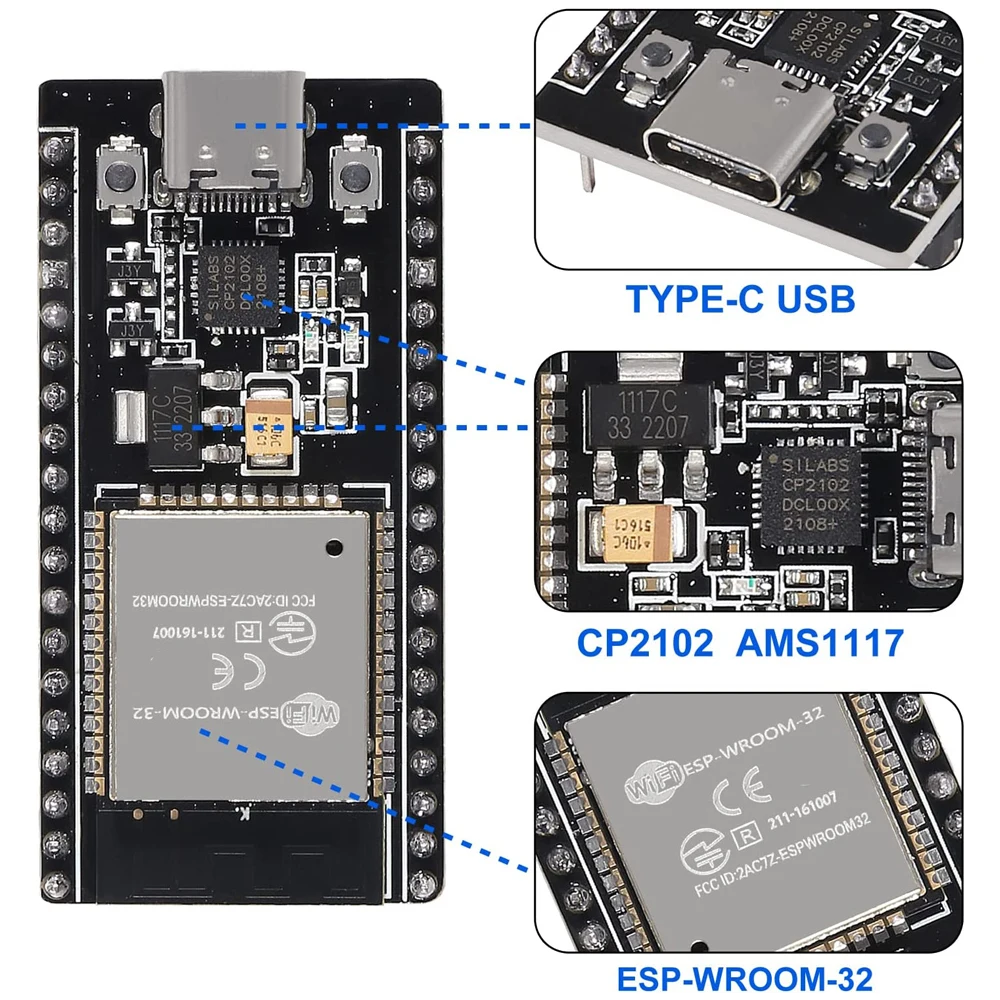Perfekt für DIY-Projekte! Dieses ESP32 Board hat alles: WiFi, Bluetooth, 38 Pins und ist Arduino-kompatibel. Mit CP2102 Chip für stabile USB-Verbindung. Unterstützt Windows und Linux, drei Betriebsmodi (AP, STA, AP+STA). Taktfrequenz von 80-240 MHz einstellbar. Im Set: 2x ESP32 Board + 2x Breakout Boards. Ideal für Smart Home, IoT-Projekte oder Roboterbau. Einfach zu programmieren, kein manuelles Umschalten nötig. Hochwertiges FR-4 Material, 1,6mm stark. Für Einsteiger und Profis gleichermaßen geeignet. Macht Spaß und eröffnet unendliche Möglichkeiten!
