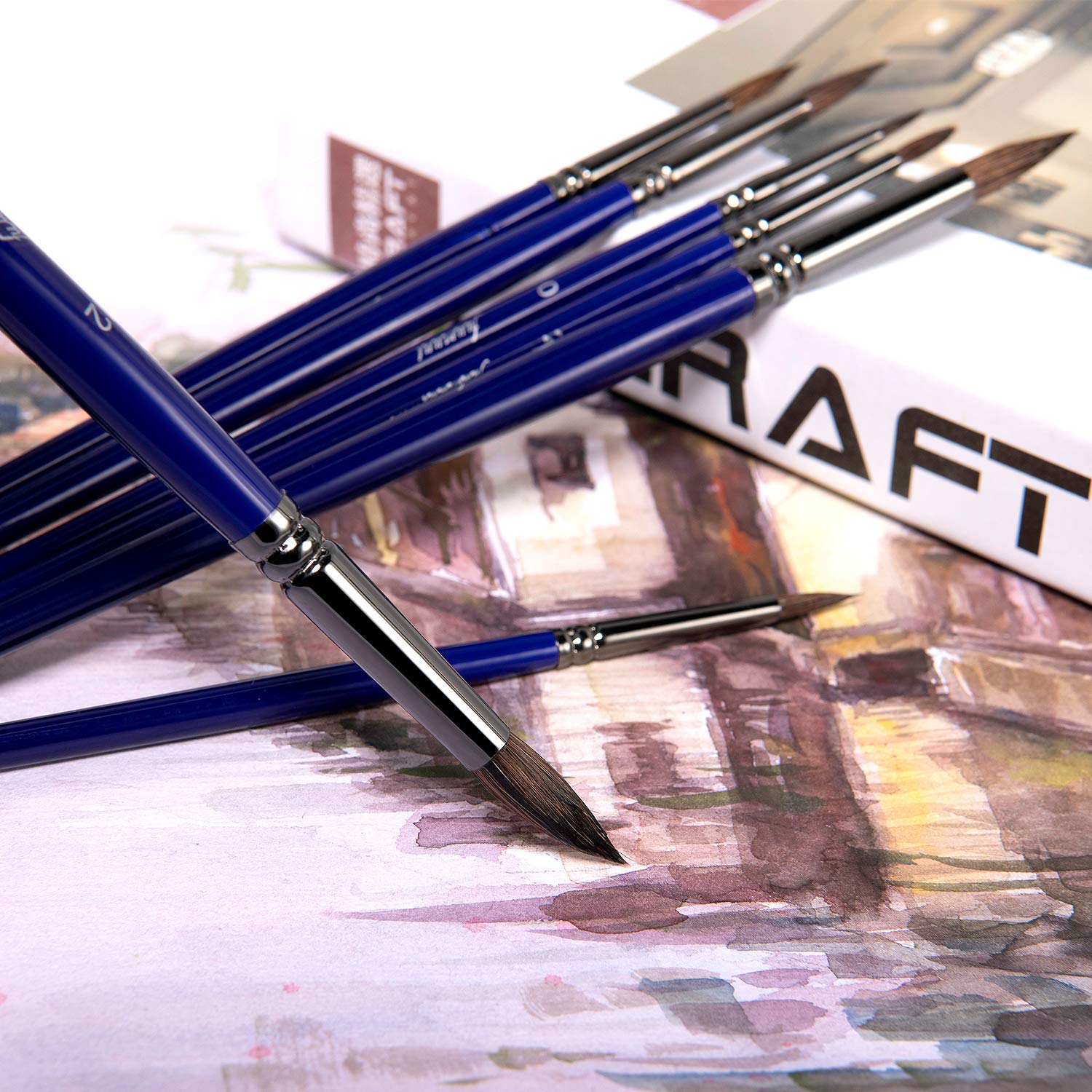 7-tlg. Aquarell Pinsel Set | Echt Haar Künstlerpinsel | Für Acryl, Öl & Gouache Malerei