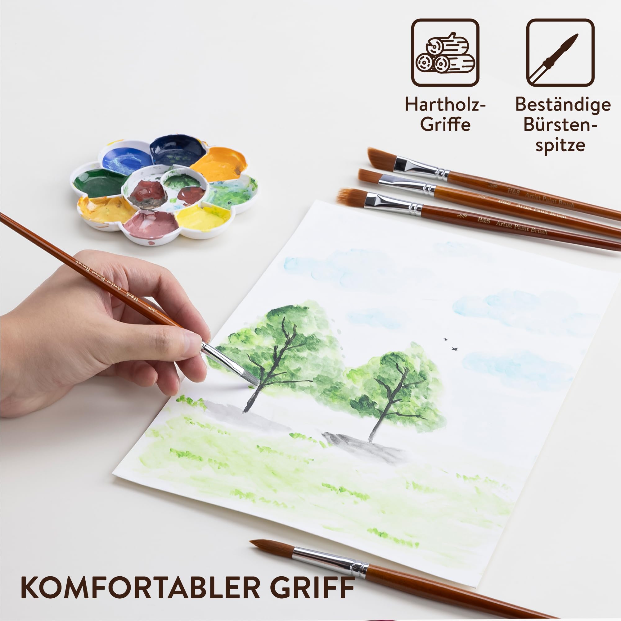 • 7-tlg. Aquarell Pinsel Set | Echt Haar Künstlerpinsel | Für Acryl, Öl & Gouache Malerei