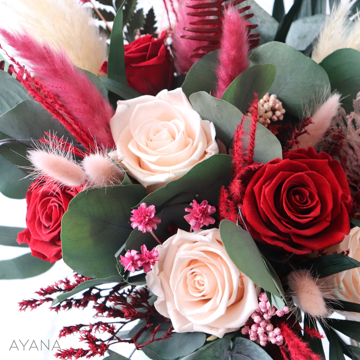 Oh, wie romantisch! Dieser konservierte Rosenstrauß hält bis zu 3 Jahre - ganz ohne Pflege! Mit 3 echten Rosen in zartem Rosa - einfach wunderschön. Der süße Bär macht das Arrangement komplett. Mit japanischer Konservierungstechnik - behalten Farbe und Form. Dazu Mini-Sonnenblumen, Hortensien und Eukalyptus - perfekt kombiniert. In luxuriöser Geschenkbox (36x12x21cm) - sofort verschenkfertig! Größe des Straußes: 26x36cm - ein echter Hingucker. Allergikerfreundlich - keine Pollen, kein Duft. Perfekt für Valentinstag, Geburtstage, Muttertag oder einfach so. Für Ehefrau, Freundin, Mutter oder beste Freundin - jede Frau freut sich! Einfach hinstellen und jahrelang Freude haben. Für alle, die bleibende Erinnerungen schaffen wollen.