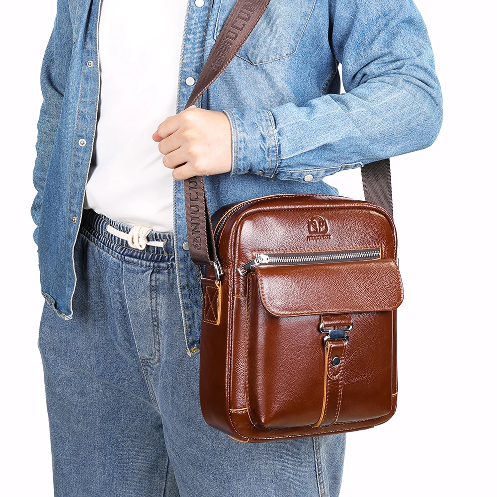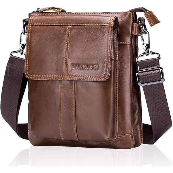 Stylish unterwegs mit dieser echten Rindsleder-Umhängetasche von MANNUOSI! Mit 18x22x6cm passt alles rein was du brauchst: Handy, 8-Zoll-Tablet, Portemonnaie, Schlüssel - einfach alles organisiert an einem Ort.