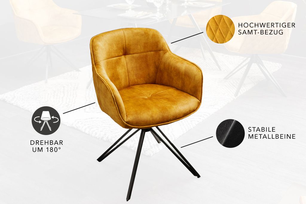 Wow - was für ein Hingucker! Dieser Riess Drehstuhl kombiniert Retro-Charme mit modernem Komfort. Bezogen mit edlem Echtleder und feiner Ziersteppung fühlt er sich einfach luxuriös an. Die Sitzschale dreht sich bis 180° - perfekt um sich mal schnell umzudrehen. Stabiler Metallrahmen in Schwarz trägt bis zu 120kg - da sitzt jeder sicher. Extra dick gepolstert für maximalen Sitzkomfort, auch nach Stunden. Perfekt fürs Esszimmer, Homeoffice oder als stylischer Loungesessel. Nur teilmontiert geliefert - in wenigen Minuten aufgebaut. Ein Möbelstück das nicht nur super bequem ist, sondern deiner Einrichtung sofort Charakter verleiht!