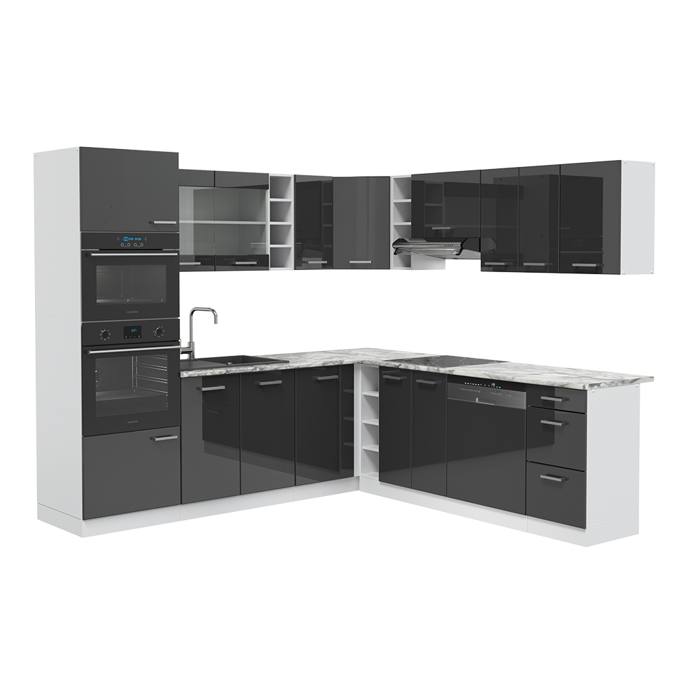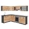 Traumküche zum Selbstaufbau - die Eckküche Rick vereint modernes Design mit praktischer Funktionalität! In trendigem Anthrazit mit warmen Goldkraft-Eiche Fronten wird sie zum Blickfang in deinem Zuhause. Mit 187 x 167 cm perfekt für kleinere Räume, aber mit reichlich Stauraum. Lieferumfang lässt keine Wünsche offen: Spülenunterschrank, Eckunterschrank, verschiedene Hängeschränke inklusive Dunstabzug, 4 Arbeitsplatten und Montagematerial. Die höhenverstellbaren Füße (9,5-13 cm) gleichen Bodensenken aus. Alles aus pflegeleichten 16mm Spanplatten mit Melaminharzbeschichtung. Die modulare Bauweise ermöglicht individuelle Anpassungen und späteres Erweitern. Einfacher Aufbau mit beiliegender Anleitung - deine neue Wohlfühlküche wartet darauf, von dir entdeckt zu werden!