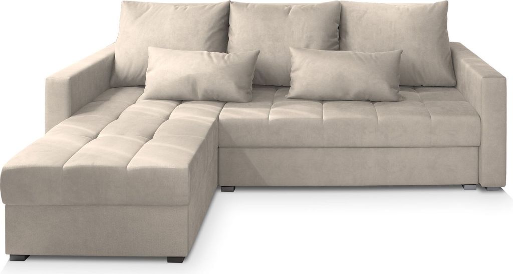 Traumhaftes Ecksofa mit praktischer Schlaffunktion! Das TOLMO M in Beige ist mit 347cm Breite ein echter Hingucker in deinem Wohnzimmer. Die integrierte Schlaffunktion (128x306cm) macht es perfekt für Übernachtungsgäste. Und das Beste: Unter der Sitzfläche versteckt sich ein großer Stauraum für Bettwäsche und Decken! Die Wellenunterfederung sorgt für optimalen Sitzkomfort und die Massivholzkonstruktion garantiert Langlebigkeit. Der MONOLITH 09 Stoff fühlt sich super weich an und sieht einfach klasse aus. Mit 70cm Sitzhöhe und 40cm Sitzhöhe ist es bequem für Groß und Klein. Das Sofa kann rechts oder links aufgebaut werden - ganz wie du möchtest. Perfekt für Familien, WGs oder alle, die gerne Gäste haben. Ein Sofa das einfach alles kann - entspannen, schlafen, Stauraum bieten und dabei noch super aussehen!