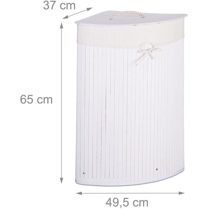Schmutzwäsche muss nicht immer im Weg rumstehen! Mit diesem Relaxdays Eckwäschekorb aus Bambus nutzt du Ecken und Nischen optimal aus. Der Korb fasst 60 Liter und hat einen praktischen Deckel, unter dem die Wäsche verborgen bleibt. Das Beste: Er ist faltbar! Wenn du ihn nicht brauchst, klappst du ihn einfach zusammen und verstaukst ihn platzsparend. Der Bambus ist nicht nur schick, sondern auch feuchtigkeitsresistent - perfekt also für Bad oder Küche. Der beiliegende Wäschesack aus Baumwolle lässt sich bei 30° waschen. Maße: 65x49,5x37 cm (HxBxT). Mit nur 1,7 kg Gewicht ist der Korb auch superleicht zu tragen. Ein echter Alltagshelfer für alle, die Ordnung lieben und jeden Zentimeter Platz nutzen wollen. Einfach aufstellen, Wäsche rein - und der unordentliche Anblick gehört der Vergangenheit an!