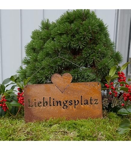 Kennzeichne deine Lieblingsecke im Garten! Dieses Edelrost-Schild mit der Aufschrift 'Lieblingsplatz' ist perfekt für den Garten, Balkon oder Terrasse. Aus robustem Metall mit schöner Vintage-Optik. Maße 20x46cm, mit 12cm langen Ketten zum einfachen Aufhängen. Wetterfest und langlebig - der Rost-Look verändert sich mit der Zeit und wird immer charmanter. Einfach an zwei Haken aufhängen, fertig. Maße: 20x46cm • Material: Edelrost • Ketten: 12cm • Stil: Vintage • Farbe: Braun • Wetterfest • Einfache Montage • Verleiht deinem Garten persönlichen Charme! Perfekt als Geschenk für Gartenliebhaber oder zur eigenen Gartengestaltung. Der rustikale Look passt zu jedem Gartenstil.