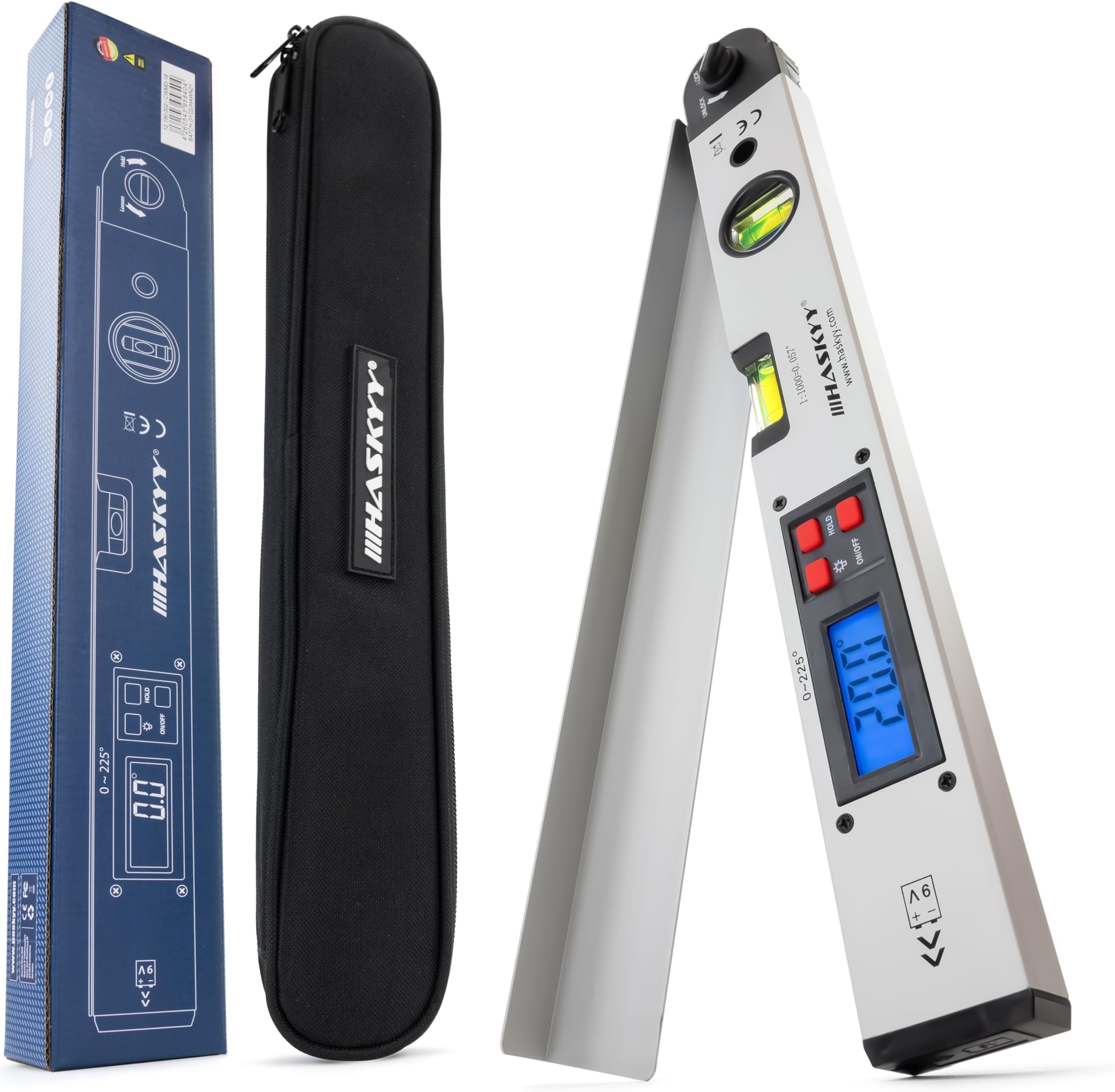 Boah, dieses digitale Winkelmesser ist ja mal richtig praktisch! Aus Edelstahl mit 200 mm Länge und super genauer Messung bis ±0,3°. Misst von 0-999,9° und schaltet sich automatisch ein wenn du es bewegst. Die HOLD-Taste friert die Anzeige ein - perfekt für schwer erreichbare Stellen. Nach 5 Minuten geht es automatisch aus, spart Batterie. Mit zwei CR2032 Batterien dabei, die ewig halten. Tiefergravierte Markierungen für klare Ablesbarkeit. Ob für Holzprojekte, Bauarbeiten oder Heimwerker - damit machst du nichts mehr schief! Einfach kalibrieren und loslegen - professionelle Ergebnisse garantiert!