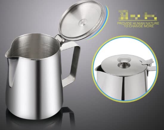 Wow, mit diesem Outbit Milchkännchen wirst du zum Home-Barista! Aus hochwertigem Edelstahl gefertigt, ist es nicht nur ungiftig und sicher, sondern auch super langlebig. Der tropffreie Auslauf ist perfekt für präzises Gießen - kein Kleckern mehr auf der Arbeitsplatte! Mit 600ml Fassungsvermögen (erhältlich auch in 250ml, 350ml, 1000ml, 1500ml und 2000ml) hast du genug Platz für mehrere Cappuccinos oder Lattes. Der ergonomische Griff liegt super in der Hand und der Deckel verhindert lästiges Auslaufen. Ob für zu Hause, im Café, Restaurant oder Hotel - dieses Kännchen macht überall eine gute Figur. Perfekt zum Milchaufschäumen für deinen Latte, aber auch super für Wasser, Saft, Teigmischungen oder Smoothies. Der schmale Auslauf ist ideal für tolle Latte Art Kreationen - da werden deine Gäste staunen! Reinigen? Kein Problem - spülmaschinenfest und easy mit Wasser und Seife zu säubern. Bei Fragen hilft unser Kundenservice innerhalb von 24 Stunden. Kleiner Hinweis: Maße können um 1-3 cm abweichen und die Farbe kann auf Bildschirmen etwas anders aussehen.