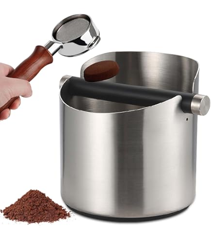 Aus hochwertigem Edelstahl gebaut, hält dieser Behälter ewig. Die große Öffnung (13,8 cm) nimmt auch größere Siebträger auf, und mit 1,6 Liter Fassungsvermögen passt locker der Kaffeesatz von 15-20 Portionen rein.