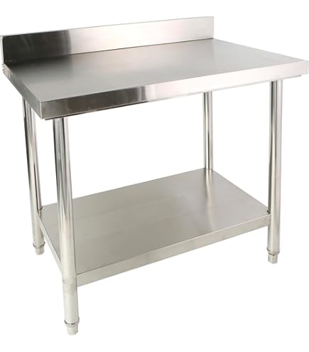Krass, dieser Edelstahltisch von HUOLE ist ein echter Allrounder! Perfekt für Küche, Werkstatt, Bar oder Gewerbe. Maße: Obere Tischplatte 61x61 cm, Gesamthöhe 90 cm, unteres Regal 15 cm über Boden. Das Beste: Bis zu 150 kg Belastbarkeit - da kannst du wirklich alles draufstellen! Aus hochwertigem Edelstahl gefertigt, der nicht rostet und super easy zu reinigen ist. Sogar NSF-zertifiziert - also absolut lebensmittelecht. Ideal zum Schneiden von Gemüse oder anderen Lebensmitteln. Das Heckklappendesign verhindert Spritzwasser und macht die Reinigung zum Kinderspiel. Zwei Ebenen bieten reichlich Stauraum: Oben für Mikrowelle, Entsafter oder andere Geräte, unten für Zutaten oder Materialien. Die stabilen Edelstahlbeine geben sicheren Halt. Montage ist total einfach - in ca. 30 Minuten laut Anleitung zusammengebaut. Hauptsächlich nur Tischplatte und Ecken zu verbinden. Perfekt für Restaurant, Imbiss, Metzgerei, aber auch für die heimische Küche oder Hobbykeller. Mit Rollen mobil einsetzbar - einfach an den gewünschten Platz schieben. Ein echter Arbeitsplatz-Profi der sich in jeder Umgebung wohl fühlt!