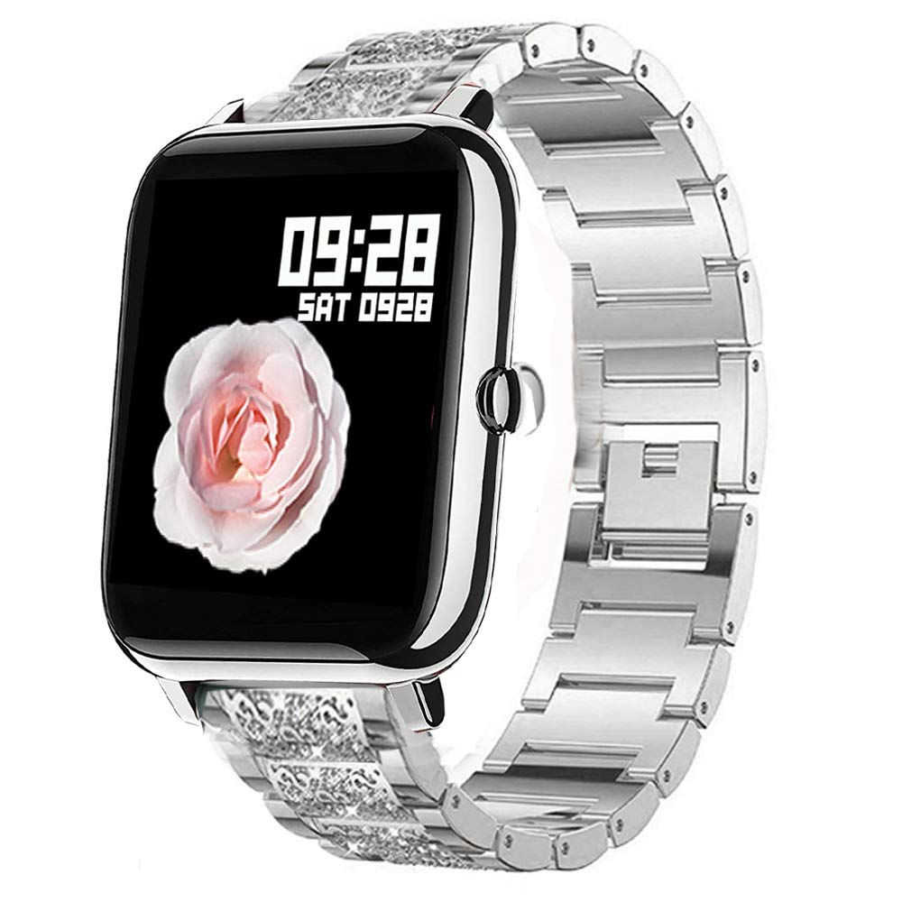 Verleihe deiner Popglory P22 Smartwatch einen glamourösen Look! Dieses elegante Edelstahl-Armband verwandelt deine Uhr in ein modisches Accessoire. Hochwertiger Edelstahl, wasserdicht und mit funkelnden Strass-Steinen verziert. Modernes Schnallen-Design für einfaches An- und Ablegen. Eine Größe passt (fast) alle - einfach an die Handgelenksgröße anpassen. Sieht aus wie teurer Schmuck, ist aber ein praktisches Armband für deine Smartwatch! Perfekt für geschäftliche Anlässe, Dates, Partys oder den täglichen Gebrauch. Kombinierbar mit Rock, Abendkleid oder Freizeitlook. Einfache Montage - speziell für Popglory P22 Modelle entwickelt. Das perfekte Geschenk für deine Liebste, Freundin oder Ehefrau zu Geburtstag, Weihnachten oder einfach so! 30-Tage-Zufriedenheitsgarantie - bei Problemen einfach melden! Hol dir jetzt den Luxus-Look für deine Smartwatch! 💎✨