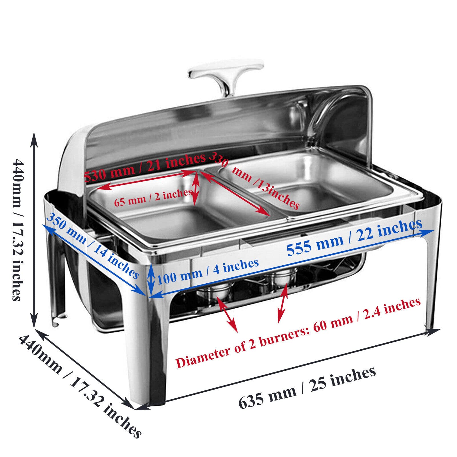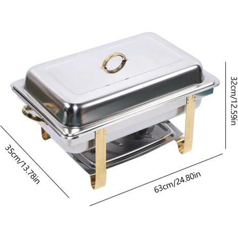 Perfekt für jede Feier! Dieser professionelle Buffet-Server aus Edelstahl hält dein Essen stundenlang warm und lecker. Mit stolzen 9 Litern Fassungsvermögen passt da rein, was das Herz begehrt - ob Fleisch, Gemüse oder Beilagen. Aus hochwertigem, poliertem Edelstahl gefertigt, ist er nicht nur robust und langlebig, sondern sieht auch noch richtig edel aus. Die Maße von 62x34x31cm sind ideal für jeden Buffet-Tisch. Einfach Wasser in die Wanne füllen, das Essen in den Einsatz geben und den Brennstoff entzünden - schon bleibt alles gleichmäßig warm. Der stabile Rahmen wackelt nicht, auch nicht bei vollen Behältern. Perfekt für Hochzeiten, Geburtstage, Firmenfeiern oder einfach nur für gemütliche Familienessen. Das silberne Design sieht immer klasse aus und unterstreicht die Qualität deines Essens. Ob im Restaurant, beim Catering oder zu Hause - mit diesem Wärmebehälter wird jede Party zum Erfolg. Deine Gäste werden begeistert sein, wenn das Essen bis zum Schluss warm und appetitlich ist!